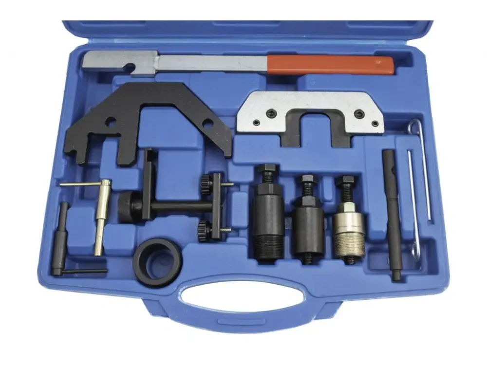 Komplexní sada nástrojů pro zajištění a nastavení rozvodů v motorech automobilů BMW a Land Rover.