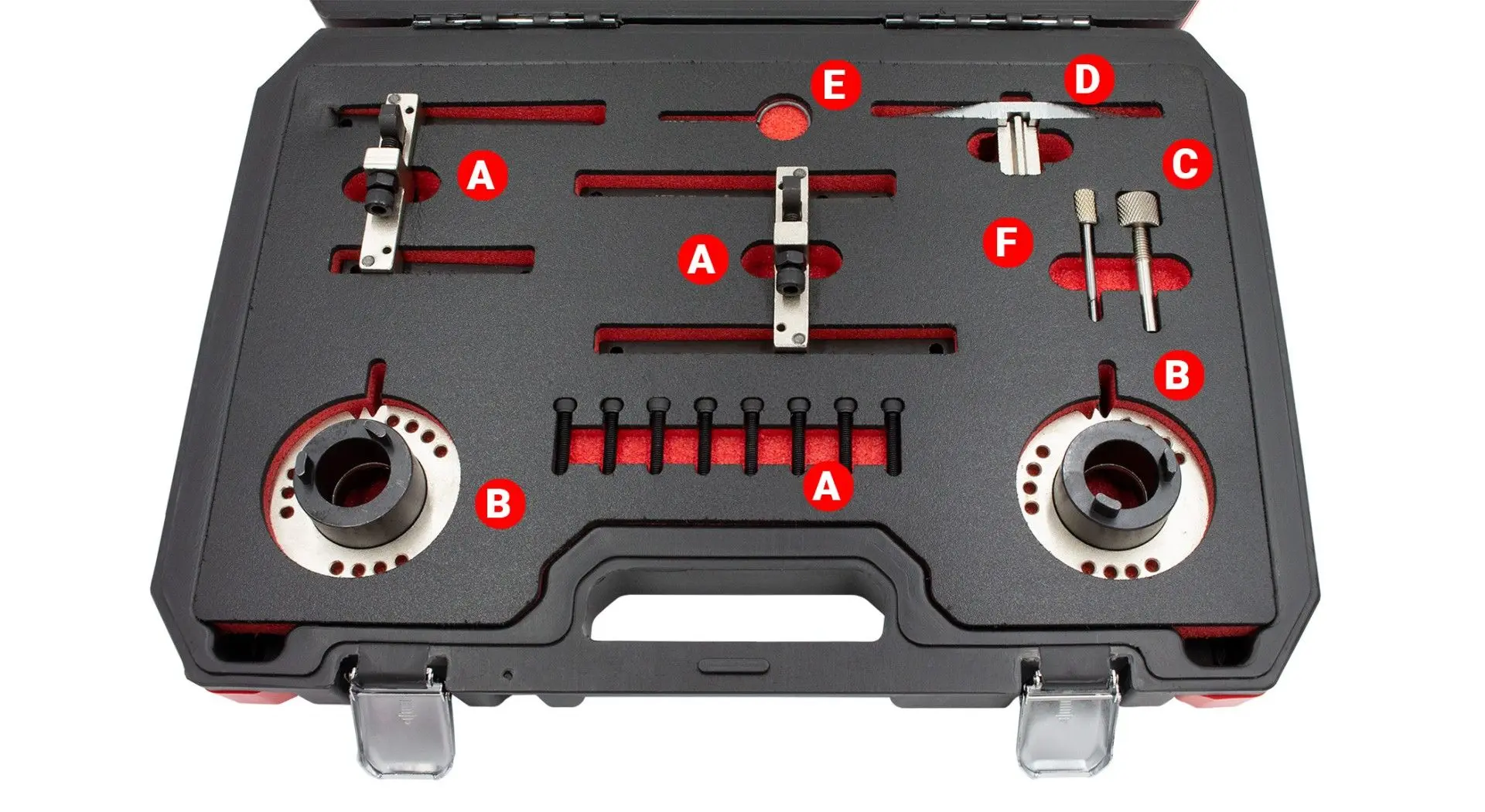 Sada nářadí určená pro blokování a nastavování rozvodů benzínových motorů 1.0 EcoBoost (Econetic/SCTi) se 3 válci.