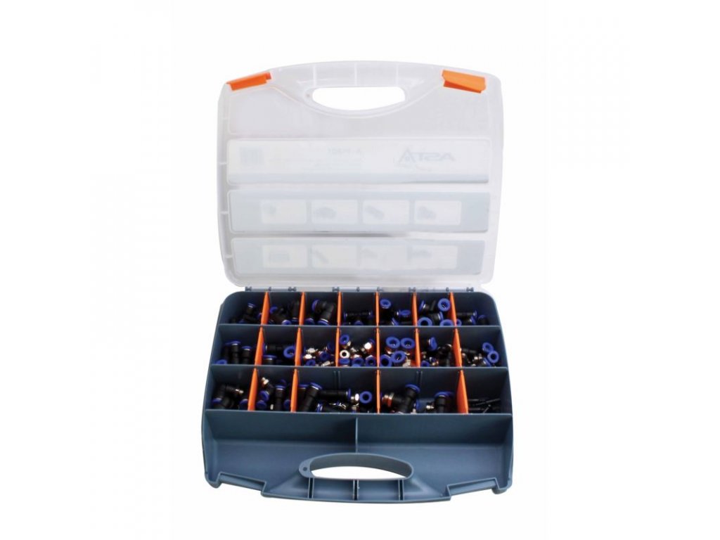 Hadicové rychlospojky „fitink“ pro vzduchové vedení, sada 180 kusů v plastovém pořadači – ASTA A-F180T