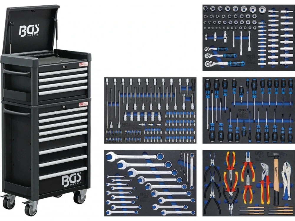 - BGS 4088 Dílenský montážní vozík Profi Standard MAXI. 12 zásuvek s vybavením 263 dílů