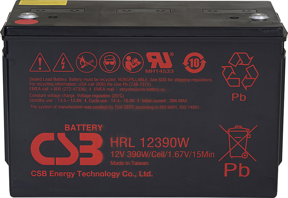 HRL12390W 12V 100Ah – záložní, bezúdržbový, VRLA, uzavřený, vysokovýkonný akumulátor od CSB Battery. Technologie AGM. Určený nejen pro záložní zdroje UPS, EZS, EPS atd.