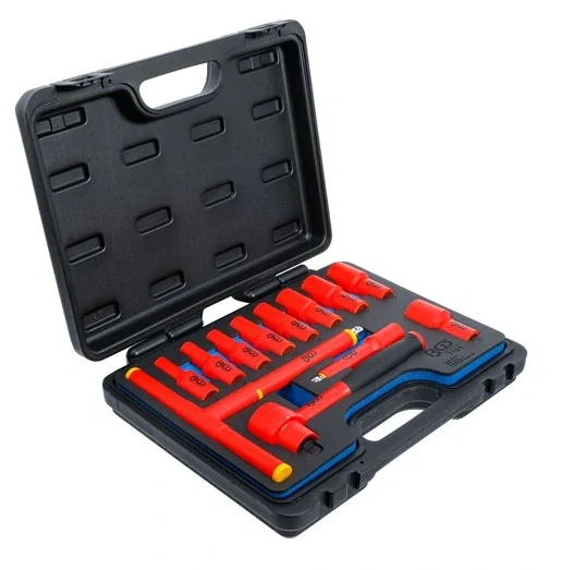 Gola sada pro elektrikáře, izolovaná VDE do 1000 V, vodicí 4hran 3/8“ (10 mm), metrické 6hranné hlavice Pro Torque® 7 až 22 mm, sada 12 dílů v plastovém kufru - BGS technic 7133