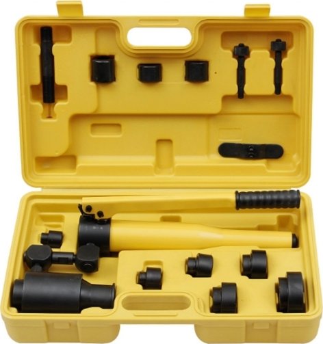 - sada v plastovém kufru obsahuje hydraulický ruční pákový děrovač a příslušná razidla / děrovače a adaptéry