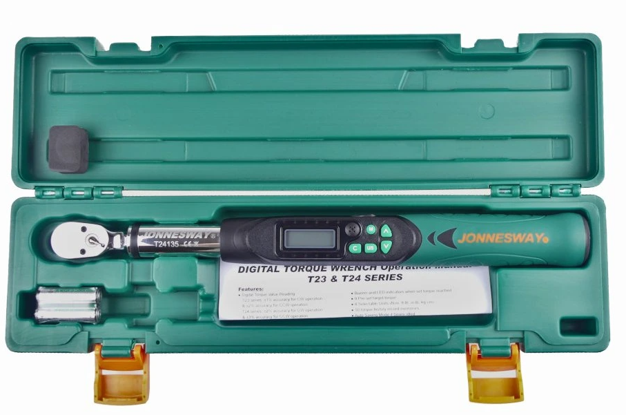 Přesný, digitální momentový klíč JONNESWAY T24135, čtyřhran 3/8“, rozsah 6,8-135 Nm, kalibrovaný, s certifikátem v českém jazyce, dodáván v plastovém kufříku.