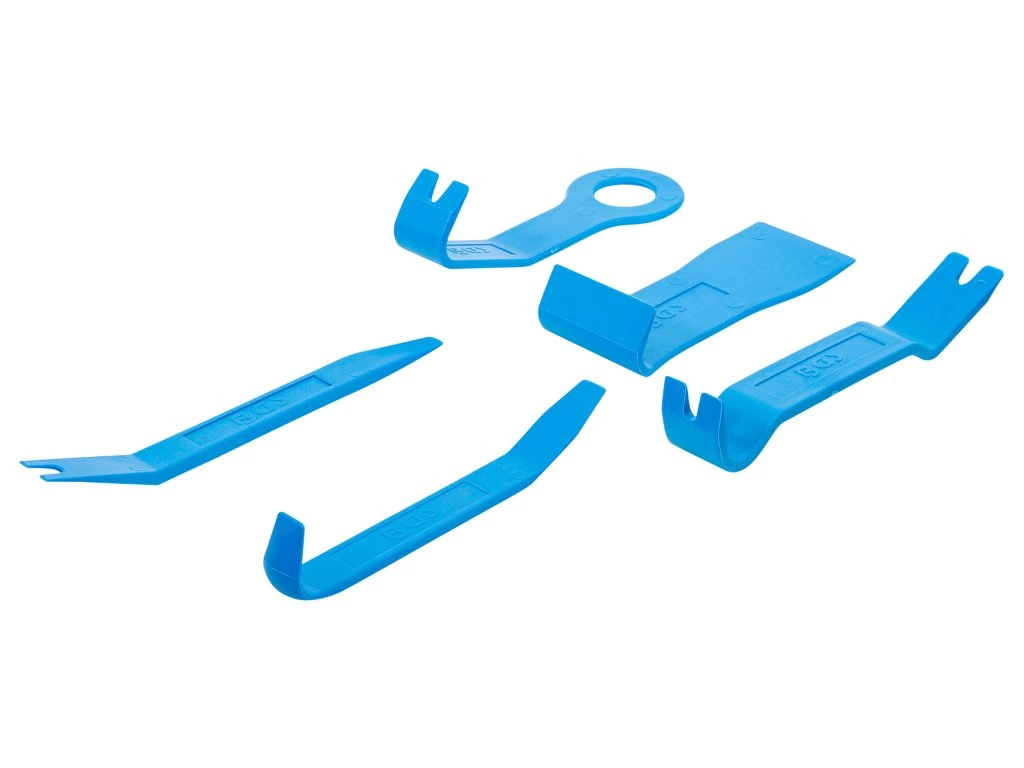 Plastové klíny / páky pro demontáž (vycvaknutí) interiérového obložení, lišt, palubní desky, gumových těsnění, čalounění interiérů atd. Vyrobeno z odolného speciálního plastu, který nepoškrábe díly, které se demontují.