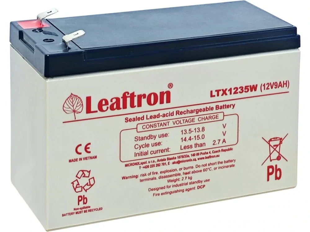 - Leaftron LTX1235W (12V/9Ah) záložní, bezúdržbový, vysokovýkonný akumulátor