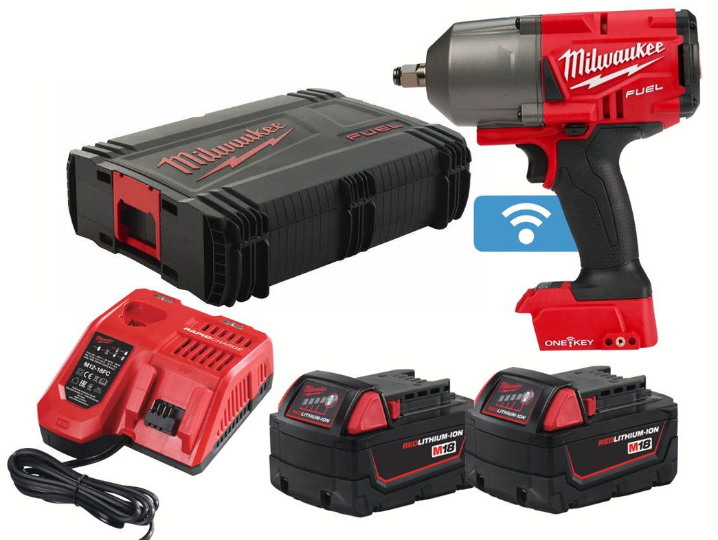 Milwaukee M18 ONEFHIWF12-502X Bezuhlíkový aku rázový utahovák Bluetooth ONE-KEY 2x aku 18V/5.0Ah