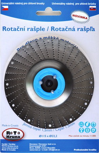 Rotační rašple - inovativní výrobek je univerzální nástroj pro úhlové brusky určený pro obrábění dřeva, plastu, gumy, pryskyřice a jiných "měkkých" materiálů.