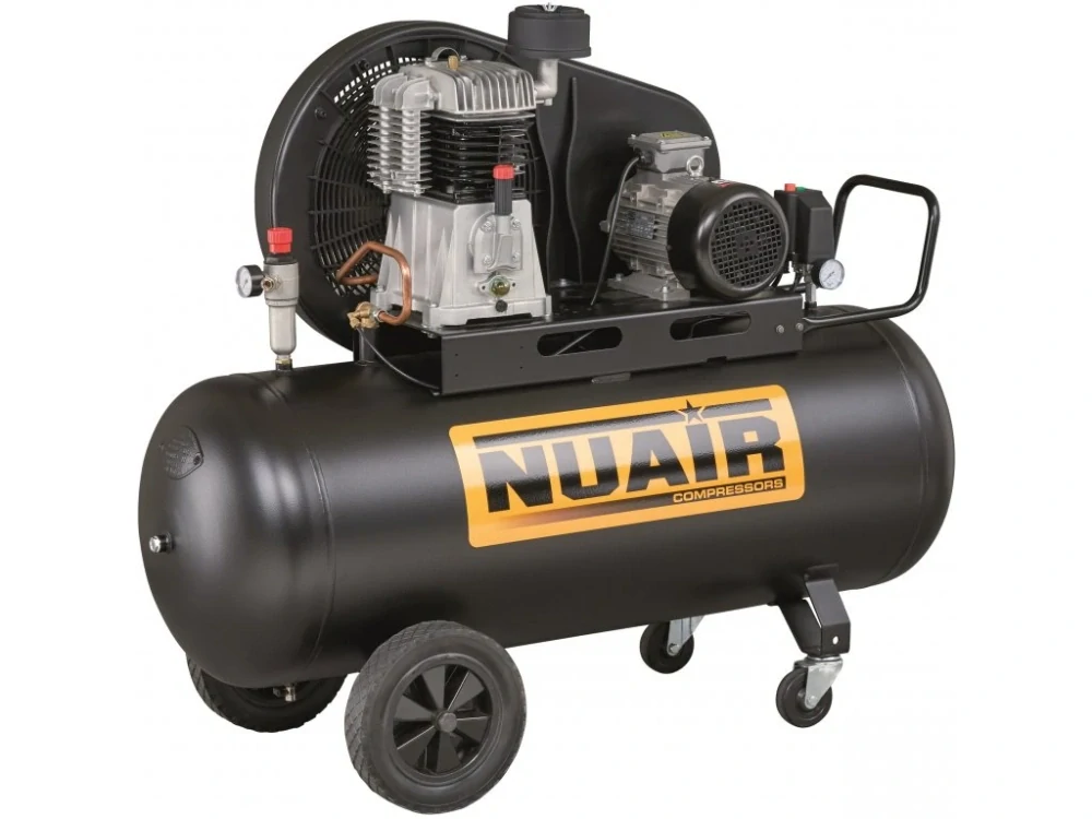 Vybavený špičkovým tlakovým spínačem NE-MA, regulátorem tlaku, pojistným ventilem, dvěma manometry. Agregát NUAIR s přídavným chladičem. Ochrana proti přetížení, odkalovací ventil nádoby, vysoce kvalitní vzduchový filtr. Velká kola pro snadný transport. Kompresor je osazen dvěma rychlospojkami pro rychlé připojení hadice.