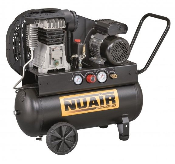 Vybavený tlakovým spínačem CONDOR, regulátorem tlaku, pojistným ventilem, dvěma manometry. Agregát NUAIR s přídavným chladičem. Ochrana proti přetížení, odkalovací ventil nádoby, vysoce kvalitní vzduchový filtr. Zadní pevná pojezdová kola. Vpředu dvě gumové patky pro lepší stabilitu. Madlo pro snadnou manipulaci. Kompresor je osazen rychlospojkou pro rychlé připojení hadice.