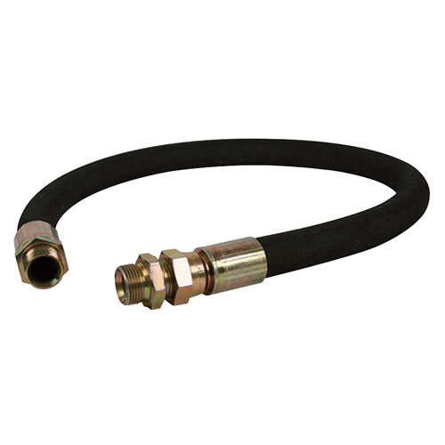 Pryžová hadice s armovanými koncovkami pro spojení tlakové nádoby s kompresorem či sušičkou.