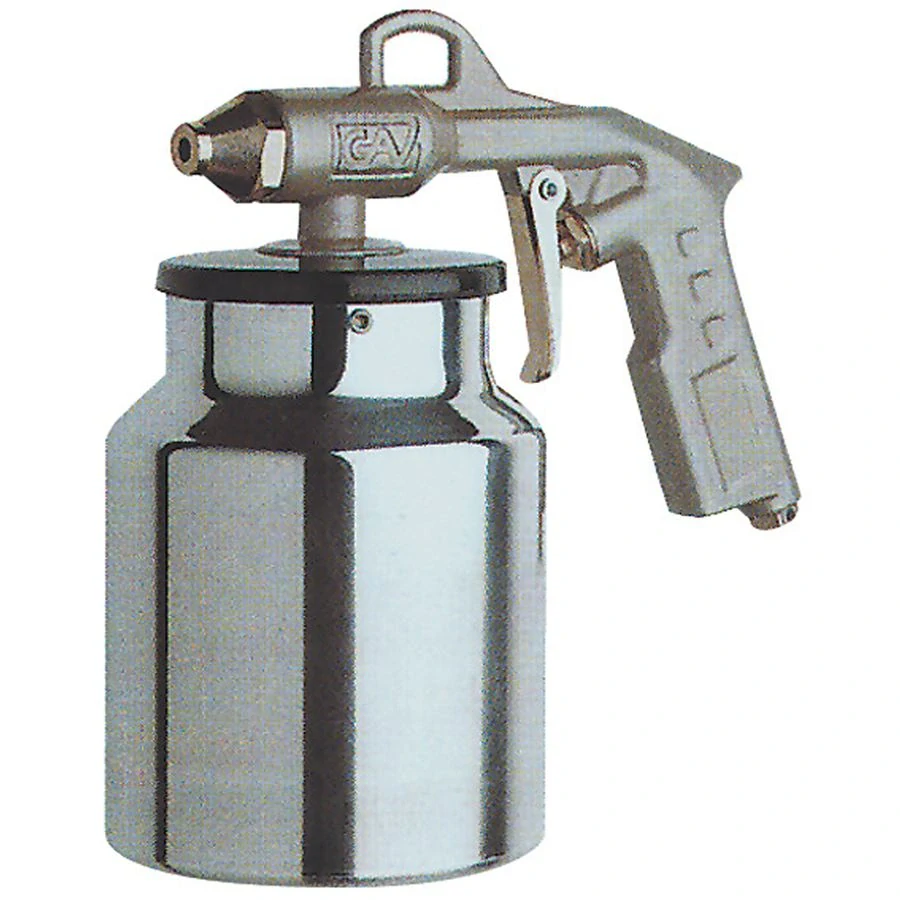 Stříkací pistole s 1-litrovou sací nádobkou, určená k údržbě podvozků motorových vozidel (aplikace ochranných laků podvozků, ochranných laků proti nárazům kamínků, přípravků pro odstraňování nečistot zastudena apod.)