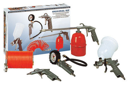 - praktická pětidílná sada základních pistolí s příslušenstvím pro kutilství, řemeslnictví a běžné údržbářské práce.