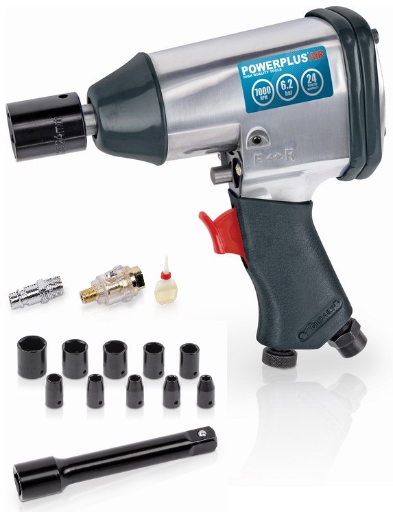 - PowerPlus POWAIR0010 pneumatický utahovák SET + KUFR