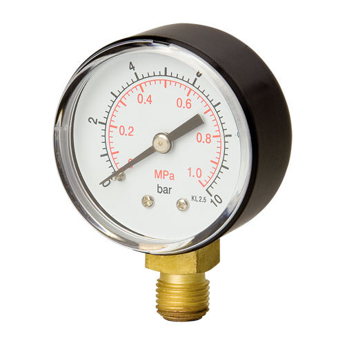 základní provedení manometrů se spodním připojením, určené pro měření tlaku neagresivních médií s nižšími nároky na mechanickou odolnost přístroje