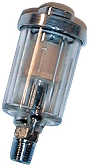 Filtr mini ke vzduchovému nářadí. Mini filtr vytahuje olej a vlhkost a tím zajišťuje lepší výsledky práce např. se stříkací pistolí.