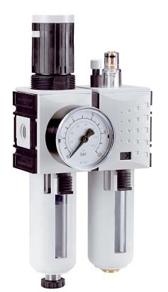 Úpravná jednotka G1" včetně manometru, max. průtok až 12000 l/min, manuální odpouštění kondenzátu.