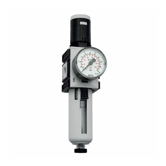Filtrregulátor G1/2" vč. mano, max. průtok až 5200 l/min, manuální odpouštění kondenzátu.