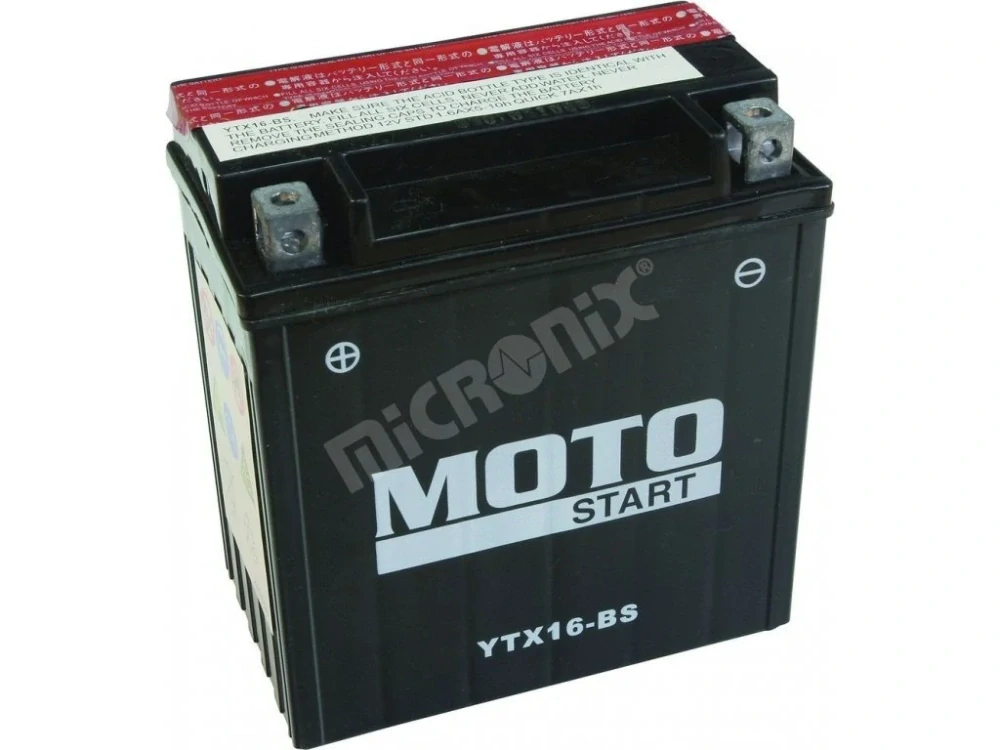 Bezúdržbový (MF) VRLA (bezúdržbový ventilem řízený) akumulátor YTX16-BS nikdy nepotřebuje doplňování, avšak stále vyžaduje periodické dobíjení! Ideální pro motocykly, jízdní a žací stroje a vodní skútry.