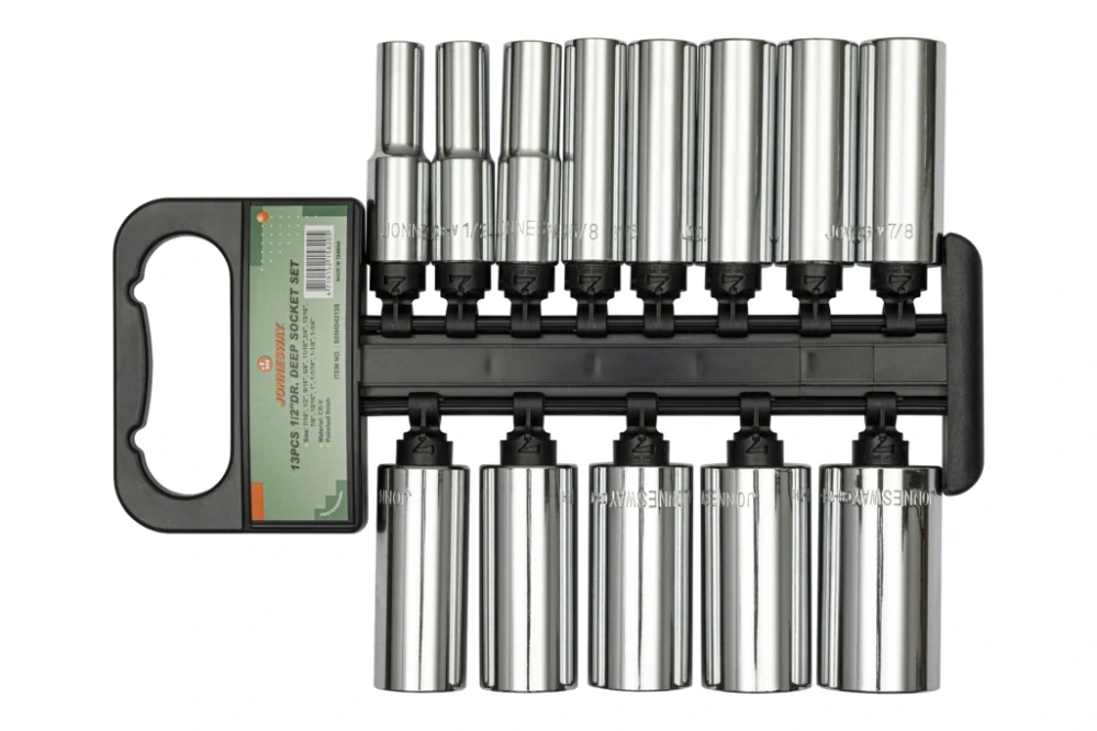Nástrčné, palcové, 6hranné prodloužené hlavice, tzv. gola ořechy, sada 13 ks – JONNESWAY S05HD4213S.