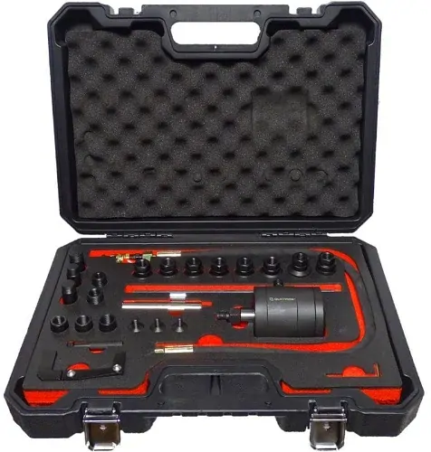 Určeno pro rychlou a plynulou demontáž vstřikovačů pomocí velmi silného pneumatického stahováku. Vzhledem k velkému množství adaptérů je stahovák kompatibilní s většinou vstřikovačů dostupných na trhu (např. Bosch, Delphi, Denso, Siemens)