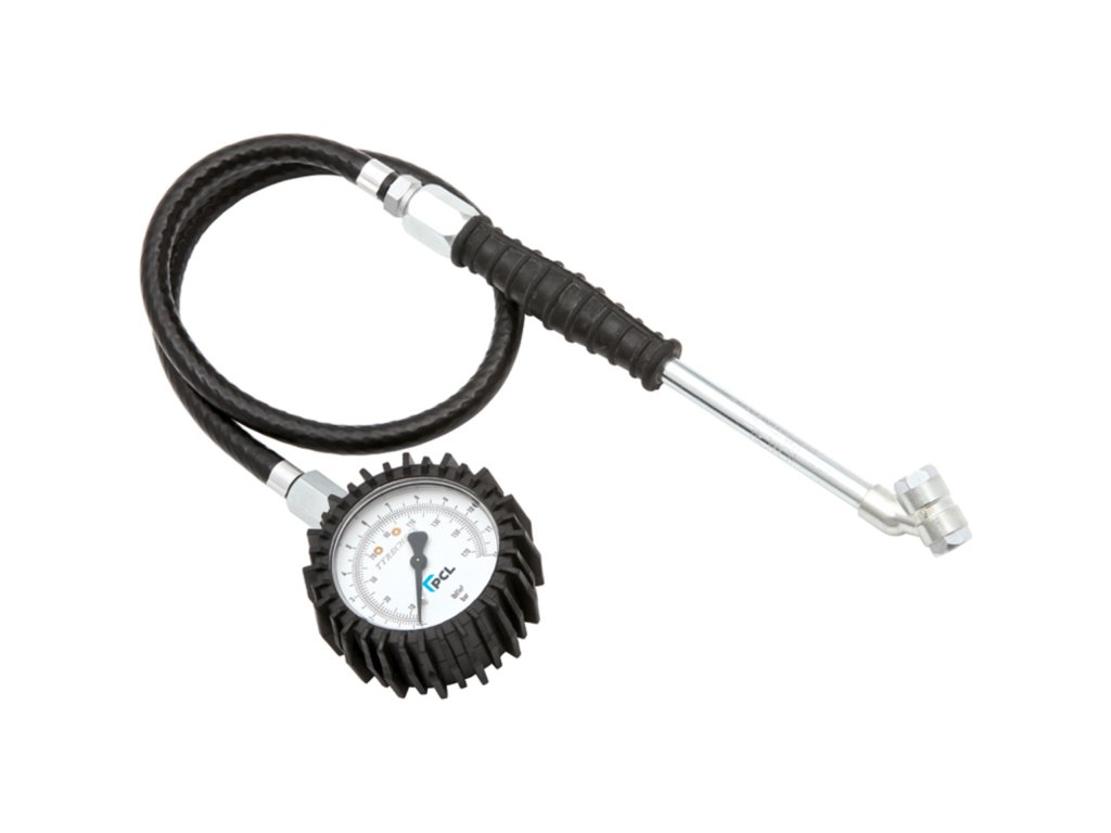 Přípravek na měření tlaku v pneumatikách, tzv. pneuměřič analogový, s velkým manometrem a hadicí 530 mm – PCL DPG3H03
