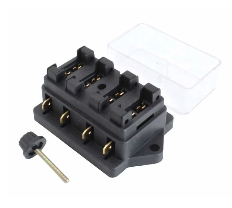 Pojistková skříňka pro montáž do elektroinstalace vozidel se čtyřmi místy. Snadná kontrola pojistek díky průhlednému překrytu – při prohlížení není třeba jeho demontáže. Víko se snadno a rychle zajišťuje pomocí šroubu.