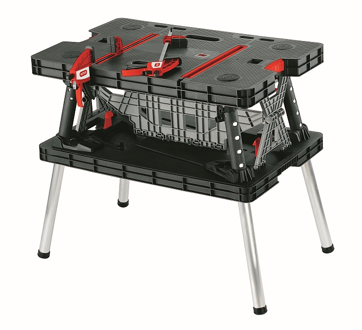 - KETER 237005 Pracovní stůl skládací se vzpěrami, nosnost 450 kg, s upínacími svorkami