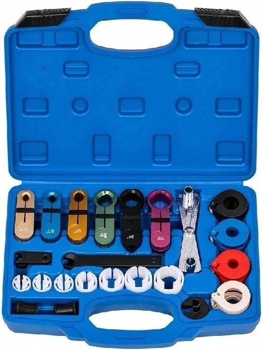 Sada přípravků určená pro precizní rozpojení spojek klimatizace a palivového potrubí typu Spring Lock, kterou používají různí výrobci automobilů (např. VW, Audi, Škoda, Seat, Renault, Citroen, Peugeot, Ford, Volvo, Hyundai, Opel/GM, Chrysler atd.) v továrně instalovaných klimatizacích a rozvodech paliva