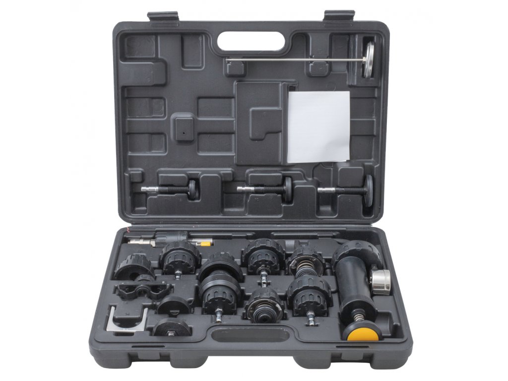 Nástroj je určen k rychlé kontrole těsnosti chladícího systému automobilů. Sada obsahuje nástavce a adaptéry pro mnoho různých značek automobilů.