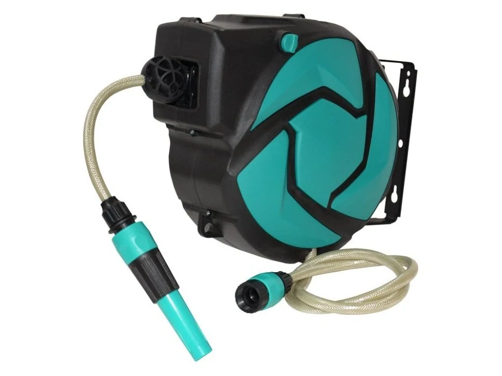 Naviják je vybaven nastavitelným dorazem, který chrání okolní předměty a stěny před poškozením. Držák navijáku umožňuje otáčení tělesa o 180°. Montáž na stěnu, strop nebo jinou konstrukci je snadná a instalační materiál je součástí balení. Hadice je chráněná skříní, což prodlužuje její životnost.