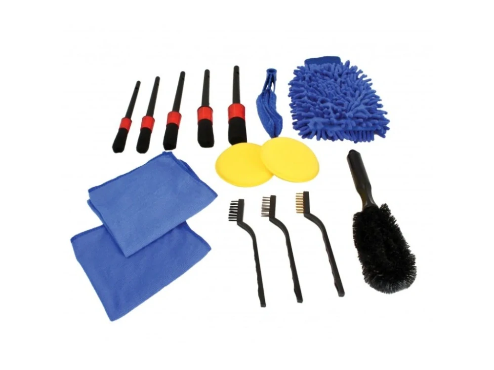 Vysoce praktická souprava kartáčů, utěrek, mycích hub a lešticích kotoučů pro komplexní očistu karosérií a interiérů aut, autobusů a dalších vozidel.