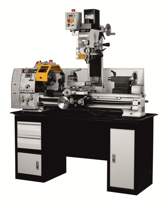 Kombinovaný soustruh PROMA SKF-750M se řadí mezi profesionální skupiny strojů, které jsou učeny pro náročné dílny, zámečnictví a školy. Díky robustnímu loži a celkové hmotnosti 532 kg nabízí excelentní přesnost. Tento typ stroje je standardně vybaven jak vodicím a tažným vřetenem pro řezání závitů, automatickým podélným a příčným posuvem, tak i natáčecí frézovací hlavou. Díky této kombinaci umožňuje kombi soustruh provádět vrtací, frézovací a soustružnické práce v malých prostorech dílen.