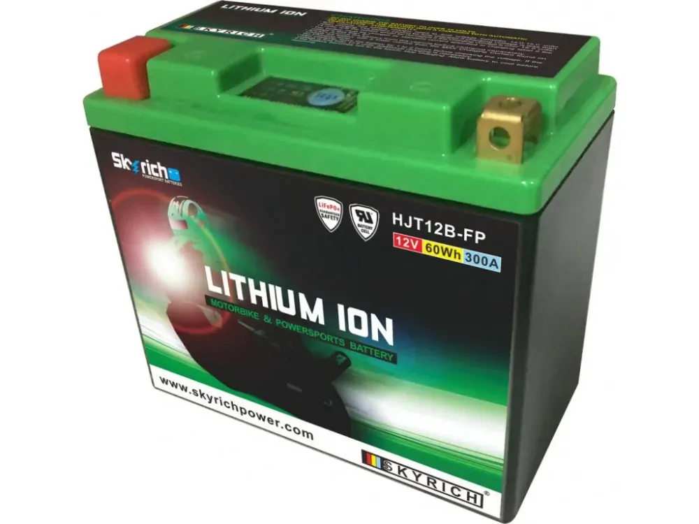 Lithiové akumulátory Skyrich LiFePO4 jsou známé svými malými rozměry. Dodávají se s distančními podložkami pro uzpůsobení jakémukoli bateriovému prostoru v motocyklu. Při správném používání nehrozí riziko výbuchu nebo požáru, jako je tomu u jiných lithiových akumulátorů. Akumulátor HJT12B-FP je šetrný k životnímu prostředí, protože neobsahuje jedovaté kovy jako olovo, rtuť či kobalt. Neobsahuje ani kyselinu sírovou, jako je tomu u olověných akumulátorů, a proto je použitelný v jakékoli poloze, včetně "vzhůru nohama". Akumulátor se dodává naplněný, přednabitý, připravený k okamžitému provozu.