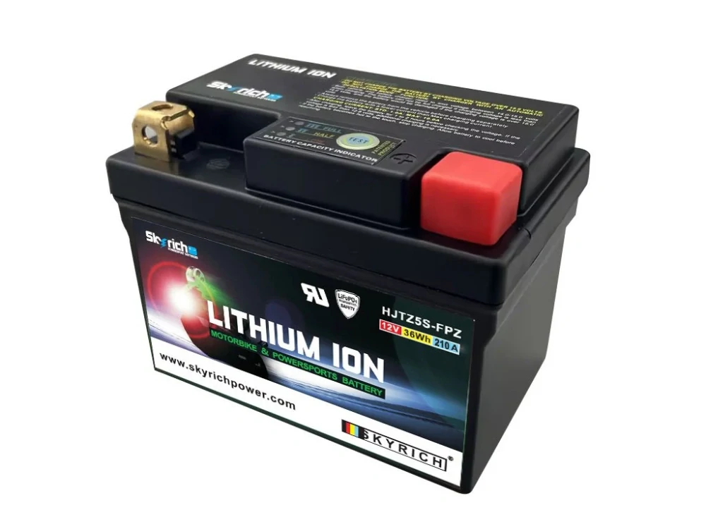 Lithiové akumulátory Skyrich LiFePO4 jsou známé svými malými rozměry. Dodávají se s distančními podložkami pro uzpůsobení jakémukoli bateriovému prostoru v motocyklu. Při správném používání nehrozí riziko výbuchu nebo požáru, jako je tomu u jiných lithiových akumulátorů. Akumulátor HJTZ5S-FPZ je šetrný k životnímu prostředí, protože neobsahuje jedovaté kovy jako olovo, rtuť či kobalt. Neobsahuje ani kyselinu sírovou, jako je tomu u olověných akumulátorů, a proto je použitelný v jakékoli poloze, včetně "vzhůru nohama". Akumulátor se dodává naplněný, přednabitý, připravený k okamžitému provozu.