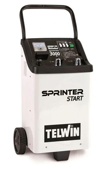 TELWIN SPRINTER 3000 START - Startovací zdroj je nabíječka baterií a startovací zařízení určené pro nabíjení baterie s tekutým elektrolytem (mokré). Umožní rychlé uvedení do provozu všech typů osobních automobilů - vhodné také pro dodávky a lehké nákladní automobily. Je vybaveno funkcí rychlého nabíjení a rychlého startu (boost). Na ovládacím panelu je ampérmetr. Tento zdroj disponuje ochranou proti přetížení a přepólování.